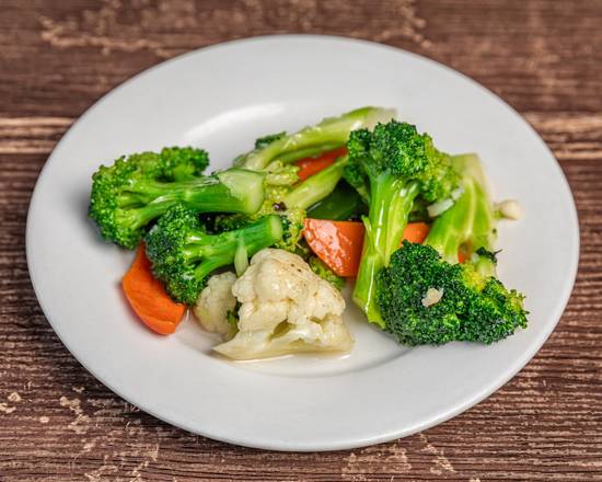 A mix of fresh vegetables stir-fried in a light and savory sauce, perfect as a side or main dish.